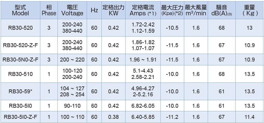- RB系列鼓風機完成依照CE / c CSA us 安全規範設計,取得國際公證機構之型式認證,對使用者人身安全有絕對保障。